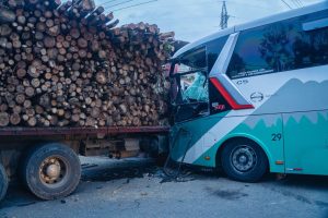 Un violento siniestro de tránsito se registró este 13 de febrero en Calpi, luego de la colisión entre un bus de transporte de pasajeros y