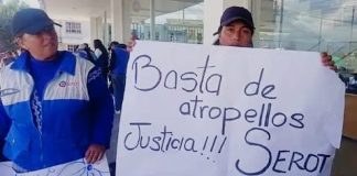 Trabajadores del SEROT marcharon en Riobamba, exigen garantías tras agresión