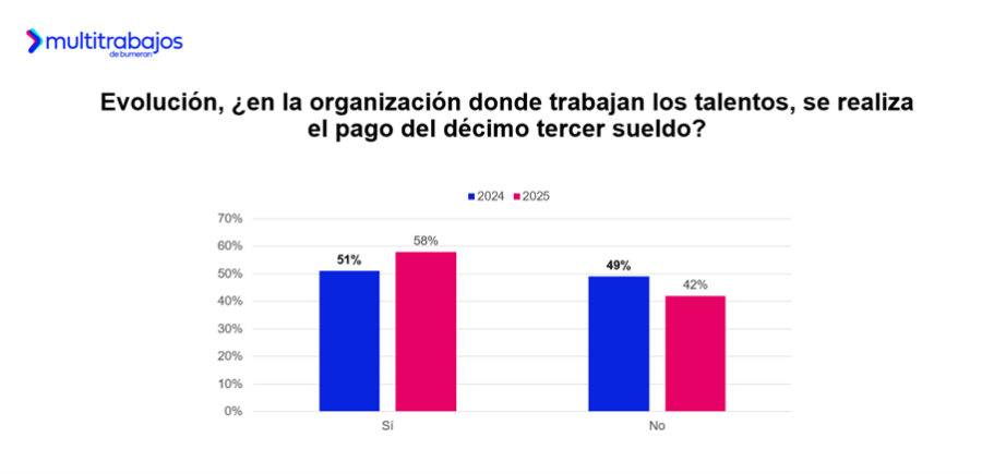 Sin embargo, el porcentaje de talentos que recibe el décimo este año se encuentra 7 puntos porcentuales por encima del 2024, cuando el 51% de los talentos mencionaba recibirlo.