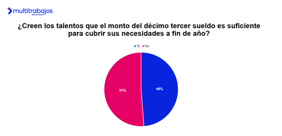 El 51% de las personas trabajadoras afirma que el pago del décimo tercer sueldo no les permite cubrir todas las necesidades de las festividades de diciembre, mientras que el 49% señala que sí logra satisfacer sus gastos de fin de año con este ingreso adicional.