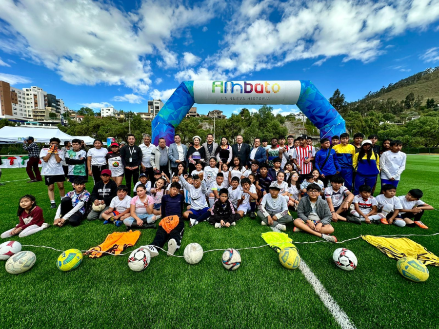 Niñez y juventud ambateña protagonizó el evento de entrega de este proyecto que contempló la reparación del cerramiento existente, instalación de una nueva malla de nylon, pintura, reposición del asfalto alrededor de este espacio deportivo.