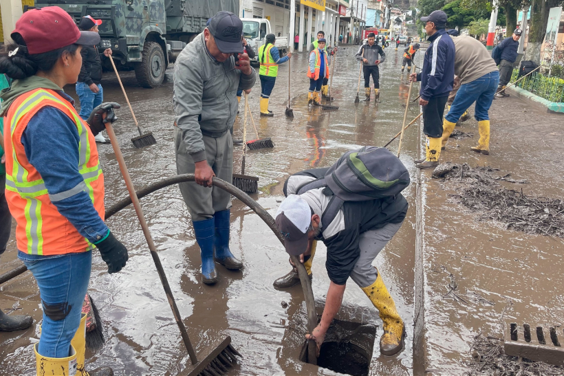 A estas labores se sumaron las Fuerzas Armadas del Ecuador, que brindan apoyo con maquinaria especializada y personal operativo para acelerar la limpieza y rehabilitación de las zonas afectadas.