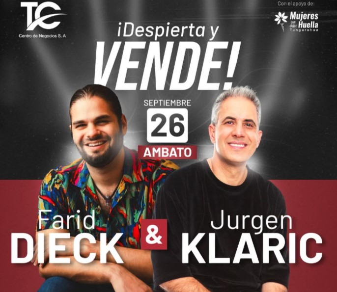 La ciudad de Ambato se prepara para recibir este viernes 26 de septiembre a dos referentes internacionales del emprendimiento y la neuroventa: Jurgen Klaric y Farid Dieck. Ambos serán los protagonistas del evento “Despierta y Vende”, que se desarrollará en el Centro de Exposiciones Ambato (EXPROA) y promete inspirar, educar y potenciar el espíritu emprendedor de los asistentes.