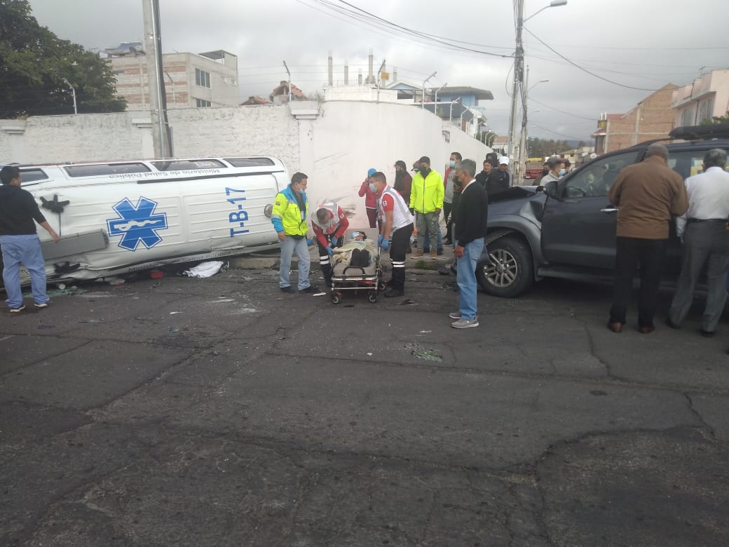 Ambulancia terminó volcada tras ser impactada por otro automotor