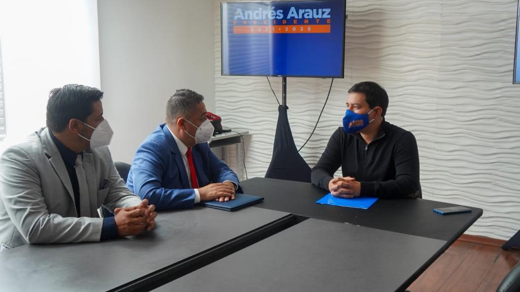 El Presidente de la Asociación de Municipalidades Ecuatorianas (AME), Raúl Delgado Orellana, entregó de manera oficial la invitación al candidato a la Presidencia de la República, Andrés Arauz, del partido Unión por la Esperanza (UNES), al Consejo Nacional de la AME.