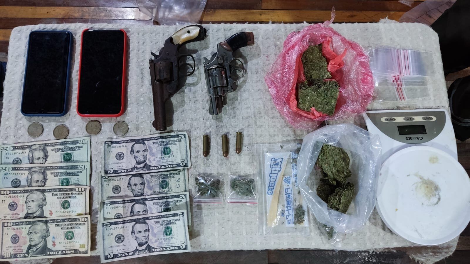 En el sector del Circuito de Policía “La Estación”, se efectuó el operativo INDEPENDENCIA, pues tras un allanamiento a un domicilio, se logró la captura del ciudadano ecuatoriano Luis V., así mismo se incautaron dos armas de fuego tipo revólver, sustancias sujetas y catalogadas a fiscalización (marihuana) y dinero en efectivo. (25)