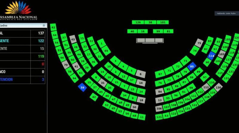 ┬á┬á┬á┬áCon 119 votos, el Pleno de la Asamblea Nacional aprobó las reformas a la Ley Régimen Tributario Interno que garantizan la entrega oportuna de los recursos que les pertenece a los Gobiernos Autónomos Descentralizados (GADs) y a las universidades y politécnicas públicas por retención del IVA.