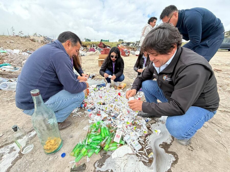 Autoridades provinciales procedieron a la destrucción de productos ilegales en el botadero de Porlón, entre ellos 250 botellas de licor decomisadas en diferentes cantones de Chimborazo.