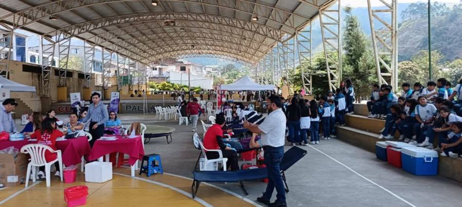 La presencia de la Cruz Roja Ecuatoriana añadió un componente fundamental con la organización de una campaña de donación voluntaria de sangre, promoviendo la solidaridad y la salud comunitaria.