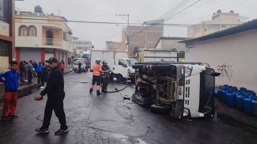 La mañana del 26 de noviembre, el cruce entre las calles Nueva York y Pichincha se convirtió en escenario de tensión luego de que dos camiones colisionaran, provocando el volcamiento de uno de ellos y dejando a una persona herida. El hecho generó especial preocupación debido a que uno de los vehículos transportaba cilindros de gas doméstico, lo que obligó a una rápida respuesta de las unidades de emergencia coordinadas desde el ECU 911.