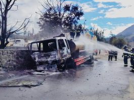 Tanquero en llamas paralizó la vía en Penipe y generó alarma