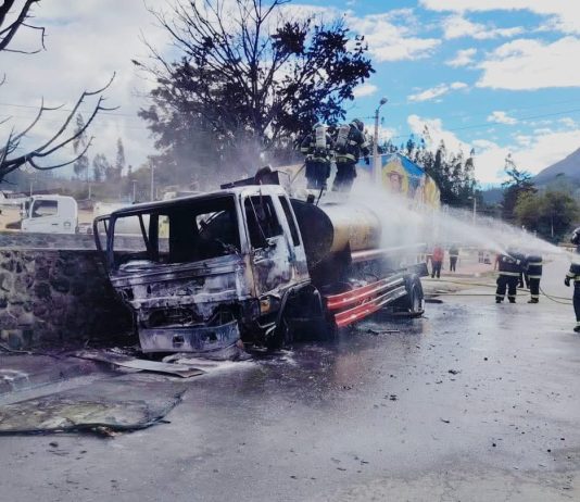 Tanquero en llamas paralizó la vía en Penipe y generó alarma