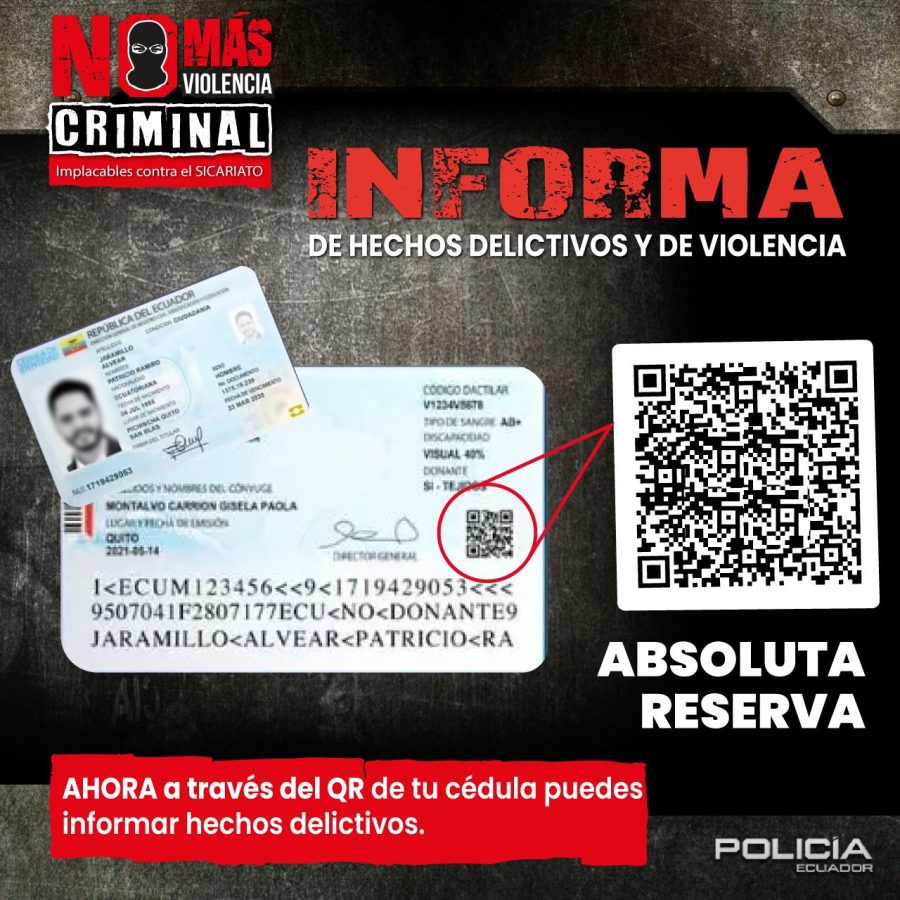 En un intento por acortar la brecha entre el delito y la denuncia, la Policía Nacional del Ecuador puso en marcha un sistema que convierte a la cédula de identidad en una herramienta operativa para reportar hechos de violencia o actividades delictivas. El mecanismo se apoya en el código QR ubicado en la parte posterior de las cédulas emitidas desde el 10 de febrero de 2021.