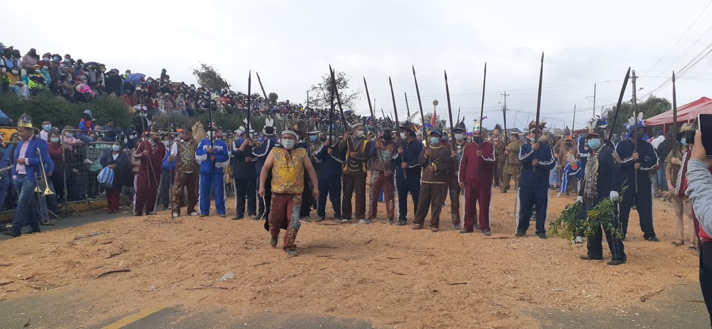 Los capitanes que representan a los españoles quienes son los priostes que apoyan económicamente para que esta fiesta se mantenga cada año. Ellos -en compañía de bandas de pueblo, pajes y soldados- ingresan a la explanada para hacer frente a los indígenas.