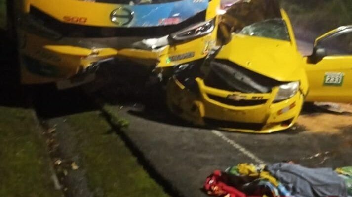 El siniestro fue entre un Bus de la Cooperativa San Francisco disco N. 13 y un taxi de la Cooperativa Terminal Terrestre de la ciudad de Tena.
