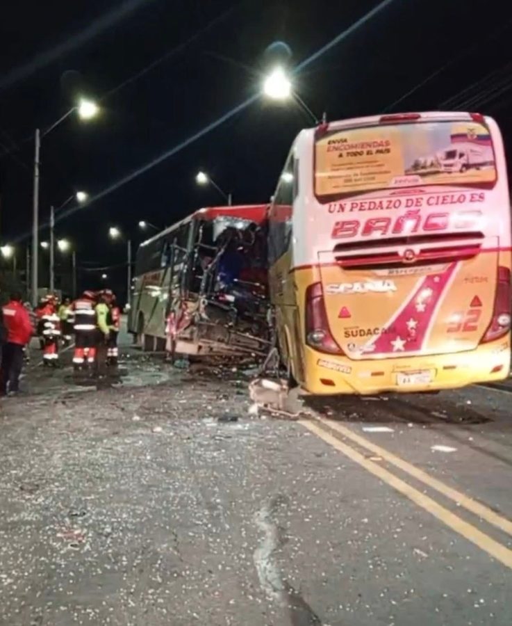 El ECU 911 informó que la alerta ingresó a las 23H51, del 20 de marzo, tras la colisión frontal entre dos buses de transporte interprovincial pertenecientes a las cooperativas Santa y Baños.