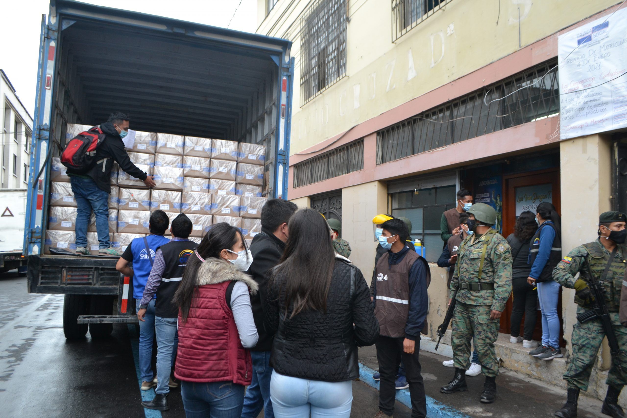 “Son cuatro camiones que contienen todo el material electoral que se empleará durante los comicios. Esto incluye urnas y biombos que se instalan en los recintos para que las personas puedan votar de forma secreta; además, kits de bioseguridad, cada uno con mascarilla, alcohol en gel, un visor y toallas desinfectantes, que se entregará a los miembros de las juntas receptoras del voto”, mencionó Jonathan Segura, director de la Delegación Electoral en Chimborazo.