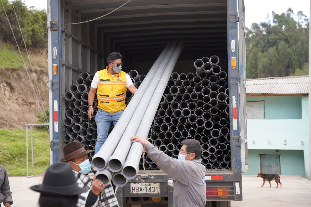La Prefectura de Chimborazo entregó tubería que servirá para el mejoramiento del proyecto de riego en las comunidades Obraje y Gompuene San Vicente, pertenecientes a la parroquia Flores del cantón Riobamba.
