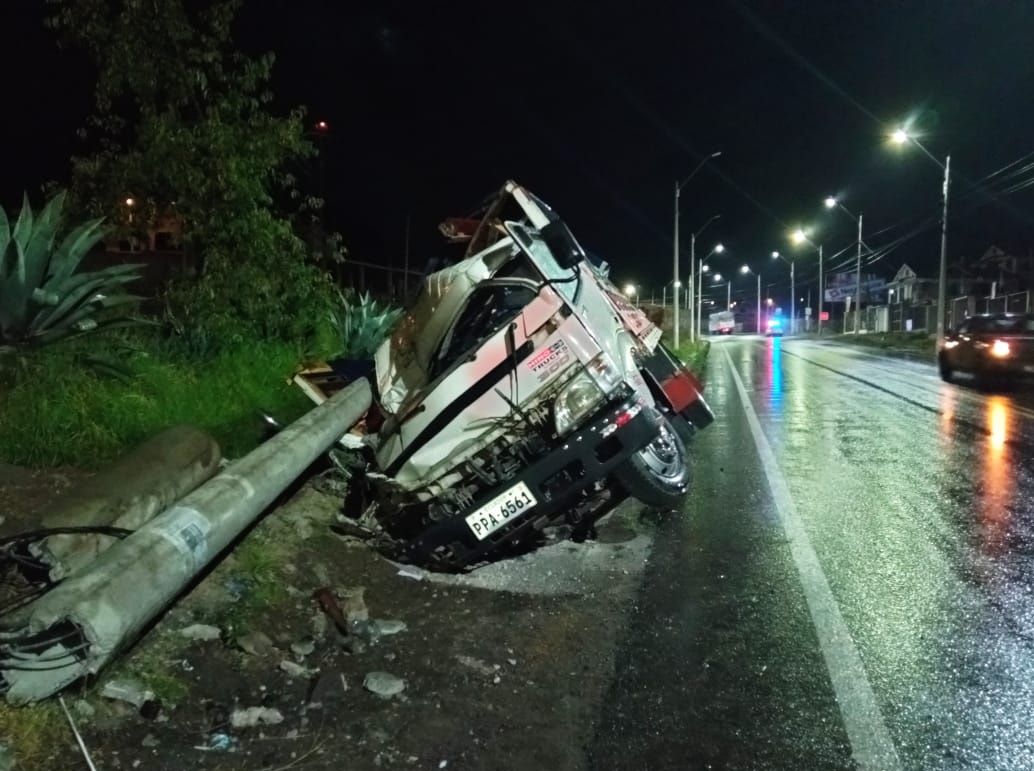 Uniformados de la Policía Nacional, alrededor de las 03h30, se movilizaron al lugar de los hechos y confirmaron la magnitud de los daños, ya que el camión se estrelló contra un poste, el cual terminó destruido. Además, no hubo heridos.┬á