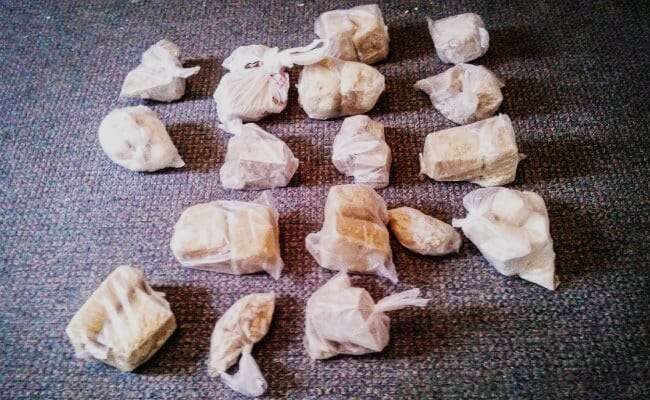 Durante la intervención, funcionarios de Fiscalía y agentes antinarcóticos encontraron, en la planta baja, un bolso negro que contenía 26,60 gramos de cocaína distribuidos en dos fundas plásticas, dos balanzas digitales, dinero en efectivo y otros indicios asociados al expendio de sustancias, mientras que los cuatro sospechosos se encontraban en el sitio al momento de la intervención, por lo que fueron aprehendidos en delito flagrante. El presunto delito está tipificado en el artículo 220, numeral 1, literal b, del Código Orgánico Integral Penal (COIP), que sanciona el tráfico ilícito de sustancias catalogadas sujetas a fiscalización en mediana escala con penas que van de cinco a siete años de privación de libertad.