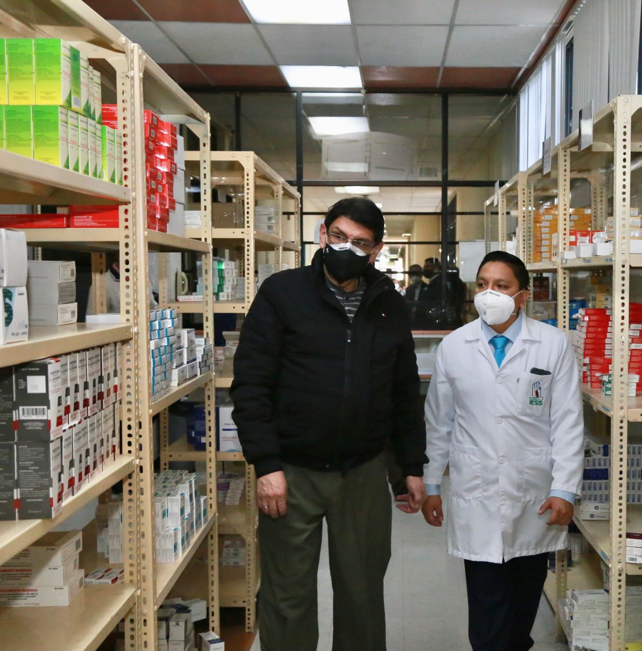 El director general del Instituto Ecuatoriano de Seguridad Social (IESS) recorrió las áreas de farmacia y constató el supuesto abastecimiento de medicamentos. Según el dato del IESS estas áreas tienen un 66% y se espera que a inicios de febrero sea del 78%. El funcionario se reunión con los directivos de las casas de salud.