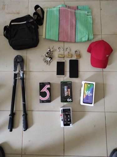 Entre las evidencias encontradas están: una cizalla color negro, cuatro celulares de diferentes marcas, treinta y ocho llaves y tres candados cortados. Además, se verificó que el establecimiento comercial, habría sido violentado en sus seguridades. Los detenidos fueron puestos a órdenes de la autoridad competente; mientras que las evidencias fueron ingresadas a las bodegas de la Policía Judicial de Bolívar.