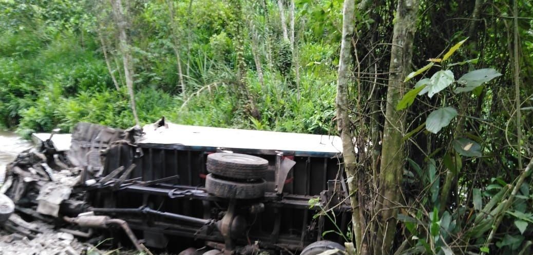 Una vez en el sitio, los miembros policiales informaron que aparentemente se trató de la pérdida de pista y volcamiento de un camión. Además, constataron que dos personas resultaron heridas por lo que fueron atendidas y llevadas a la casa de salud.