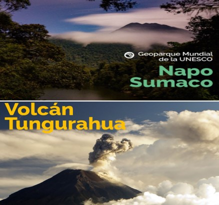 Los Geoparques Mundiales son áreas geográficas de relevancia internacional, reconocidas por su patrimonio geológico, natural y cultural. Ecuador cuenta ahora con: Bosque Seco de Loja (2024), Imbabura (2019), Kutukú-Shaimi (2024), Río Napo (2023), y los más recientes, Napo Sumaco y Volcán Tungurahua (2025).