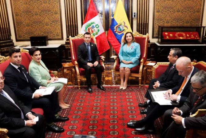Noboa también felicitó a los cancilleres por los resultados obtenidos en la decimosexta Comisión de Vecindad Peruano-Ecuatoriana. En ese espacio se acordó el Plan de Acción de Lima 2024 que se adoptará este jueves.