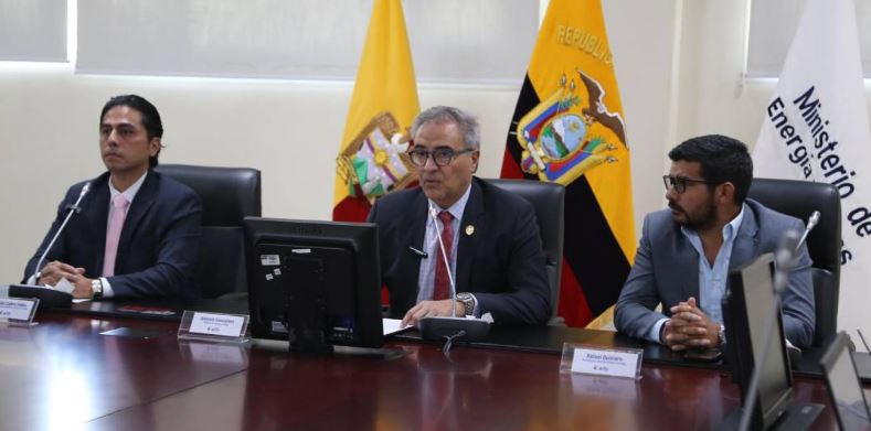El ministro de Energía y Minas, Antonio Goncalves; el viceministro de Electricidad y Energías Renovables, Rafael Quintero; y el Gerente General de CELEC EP, Fabián Calero, dieron detalles para estas contrataciones en una rueda de prensa realizada este 27 de agosto en Quito.