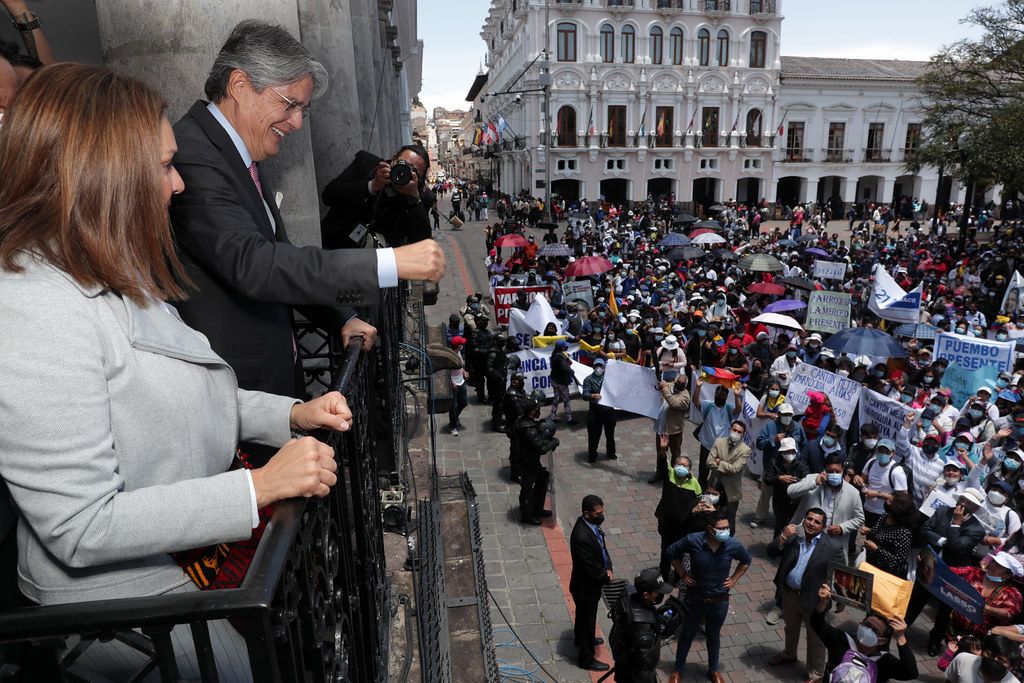 En una breve aparición estuvo acompañado por su esposa, María de Lourdes Alcívar, y el secretario de Comunicación, Eduardo Bonilla. Desde la Plaza de la Independencia, decenas de simpatizantes auparon el discurso del Mandatario. Mientras Lasso advertía que “aquellos que dicen admirar al Joker de la película de Batman, les decimos que los malos solo ganan en las películas”. La denominada concentración por la paz, frente al Palacio presidencial se hizo como respuesta a la convocatoria del movimiento indígena, que celebra un parlamento popular en la Casa de la Cultura para conmemorar el paro nacional de octubre de 2019.