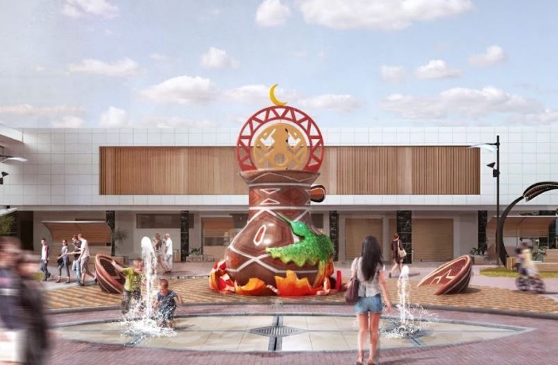 Está formada por 4 piezas de concreto: la central es una representación artística de una tinaja rodeada por 3 mokawas que fueron diseñadas por mujeres indígenas maestras en cerámica y plasmadas en tamaño gigante como una fiel copia del original.