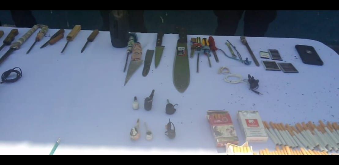 218 gramos de droga fueron hallados en diferentes partes de la cárcel de Riobamba, a parte de las armas cortopunzantes.