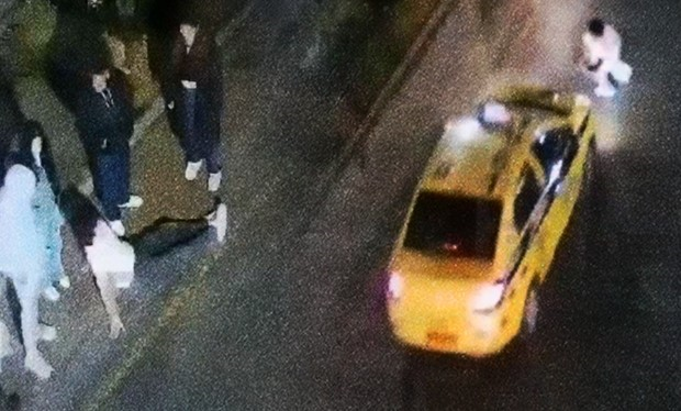 En los videos difundidos por la central de emergencias se observa cómo el ciudadano, identificado con un chaleco blanco, espera a que un carro se acerque, corre hacia él, se sube al capó y luego cae sobre la calzada fingiendo lesiones.