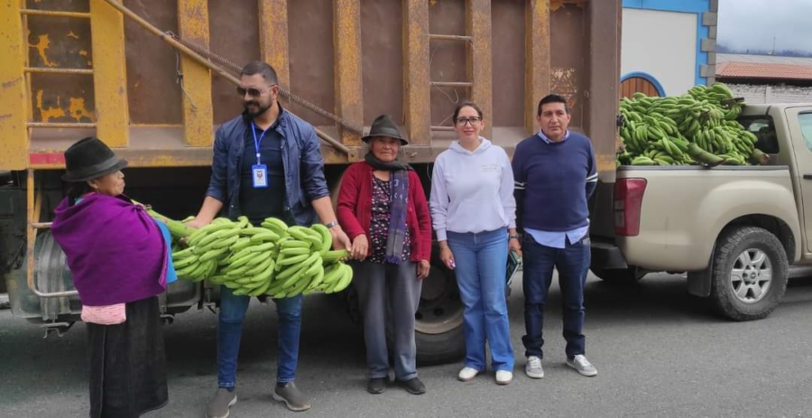 El Ministerio de Agricultura y Ganadería, en colaboración con la Dirección de Los Ríos, ha entregado cuatro toneladas de banano a productores de los sectores Matus, El Altar, Puela y Bayushig del cantón Penipe, en la provincia de Chimborazo.