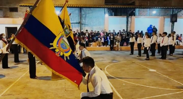 Los protagonistas fueron los estudiantes de Tercero de Bachillerato de la Oferta Formal para Jóvenes, Adultos y Adultos Mayores, quienes ratificaron su compromiso con la Patria al realizar el juramento solemne ante la bandera nacional.