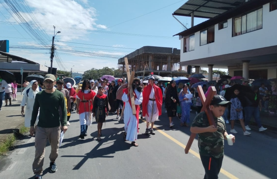 En la provincia de Pastaza, estas expresiones de fe adquieren un carácter vivencial. Una de las más representativas es el viacrucis viviente del Viernes Santo, donde jóvenes que culminan su proceso de catequesis dramatizan con profundo respeto el camino de Cristo hacia el Calvario.
