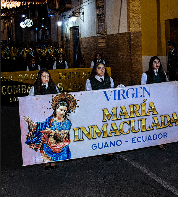El cantón Guano vivió una jornada llena de color, tradición y fervor religioso durante el pregón en honor a María Inmaculada, desarrollado la tarde y noche del viernes 5 de diciembre por las principales calles de la ciudad. El evento marcó el inicio de las festividades dedicadas a la patrona local, una celebración arraigada en la identidad cultural y espiritual del cantón.
