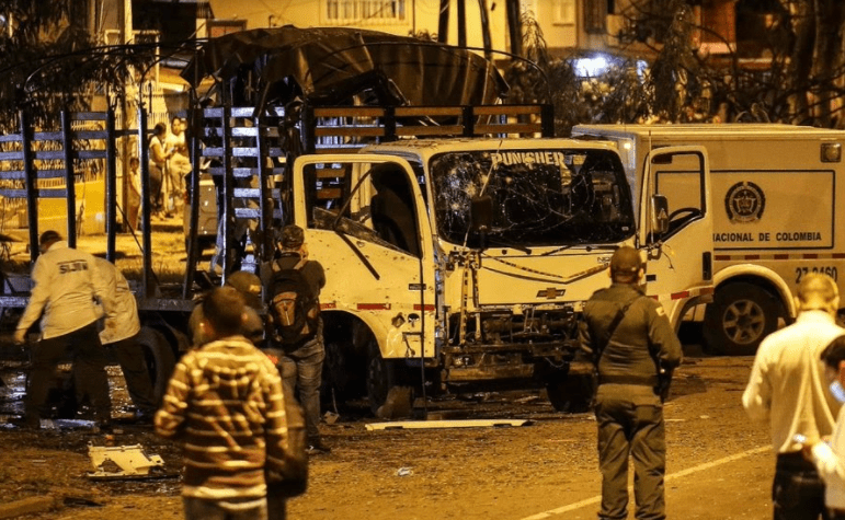 Los hechos ocurrieron en la noche del viernes, en el sector de Puerto Rellena, en el suroriente de Cali, uno de los epicentros de las protestas de 2021 contra el Gobierno, cuando atacaron con explosivos un camión de la Escuadrón Móvil Antidisturbios (Esmad) de la Policía.