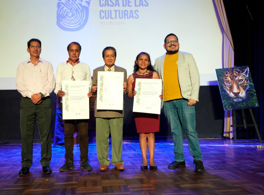 Entre los galardonados se encuentran el escritor Hernán Heras Luna (Literatura), Edwin Aguirre Guamán (Patrimonio), y Marcia Chango (Artesanía).