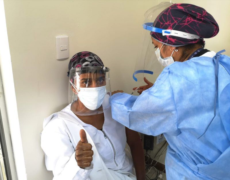 ┬á┬á┬á┬áEsta semana, se prevé terminar al 100% la aplicación de la primera dosis al personal sanitario (vacunable de la red pública y privada del Ecuador). El ministro de Salud Pública, Rodolfo Farfán, indicó que ha solicitado a la Federación Nacional de Médicos y a la Federación Nacional de Enfermeras, las bases de datos de todos sus registros para cruzarlos con el del personal sanitario vacunado, a efectos de constatar que ningún profesional médico o de enfermería apto para recibir la vacuna se haya quedado fuera del proceso. (28)