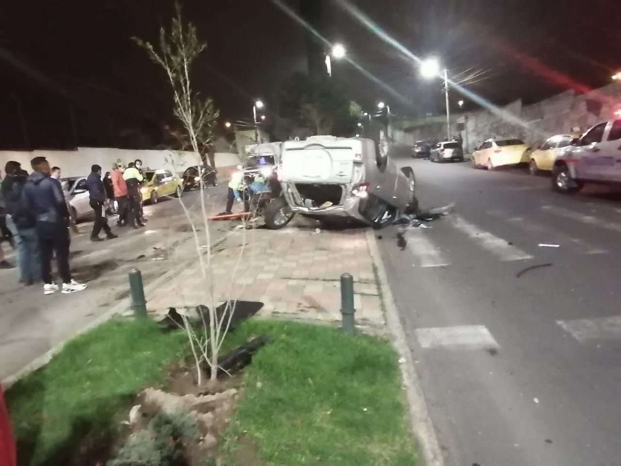 Los organismos de socorro informaron que se trató de la pérdida de carril con estrellamiento y posterior volcamiento de un vehículo tipo jeep. Producto del incidente, dos hombres de 28 y 29 años de edad resultaron heridos, por lo que fueron ingresados al Hospital General y al Hospital del IESS.