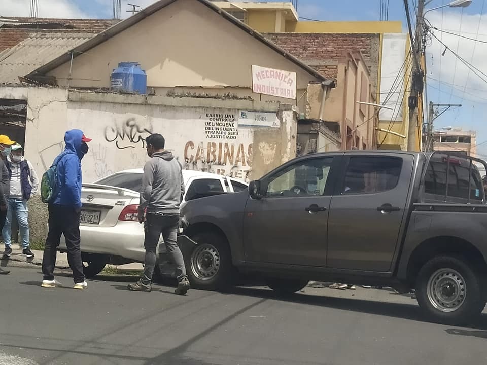 En las calles Junín y Vicente Rocafuerte, el choque entre una camioneta y un automóvil dejó con los nervios de punta a los habitantes de esa zona, ya que, si bien no hubo heridos, las afectaciones se evidenciaron en el lugar, ya que uno de los autos y que al parecer su conductor no respetó el disco “PARE” terminó sobre la vereda.