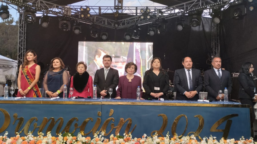 María Vallejo, Rectora de la Unidad Educativa “Pensionado Olivo”, en su discurso de orden dijo: “El importante y notable acontecimiento que hoy nos une, significa un espacio especial en el sentimiento de todos quienes hemos sido testigos del enorme esfuerzo desplegado por nuestros estudiantes, aquellos que venciendo las dificultades y vislumbrando un elevado espíritu de superación y entrega han cursado y culminado con éxito su plan de estudios durante su vida estudiantil. Ellos han sabido comprender que los cambios tecnológicos en el mundo de hoy, requieren un mayor esfuerzo y dedicación en cada una de las áreas del conocimiento. La mesa directiva estaba conformada por: Inés y Nelly Olivo, propietarias de la institución educativa; Katherine Rosenberg, Gerente General; María Vallejo, Rectora de la Unidad Educativa “Pensionado Olivo”; Fausto Gualli, Vicerrector Académico; Luis Montero, Asesor Institucional; Fernando Pérez, Inspector General; Tecnóloga Maritza Díaz, Vicealcaldesa de la ciudad y Lesly Estrada, Reina de Riobamba.