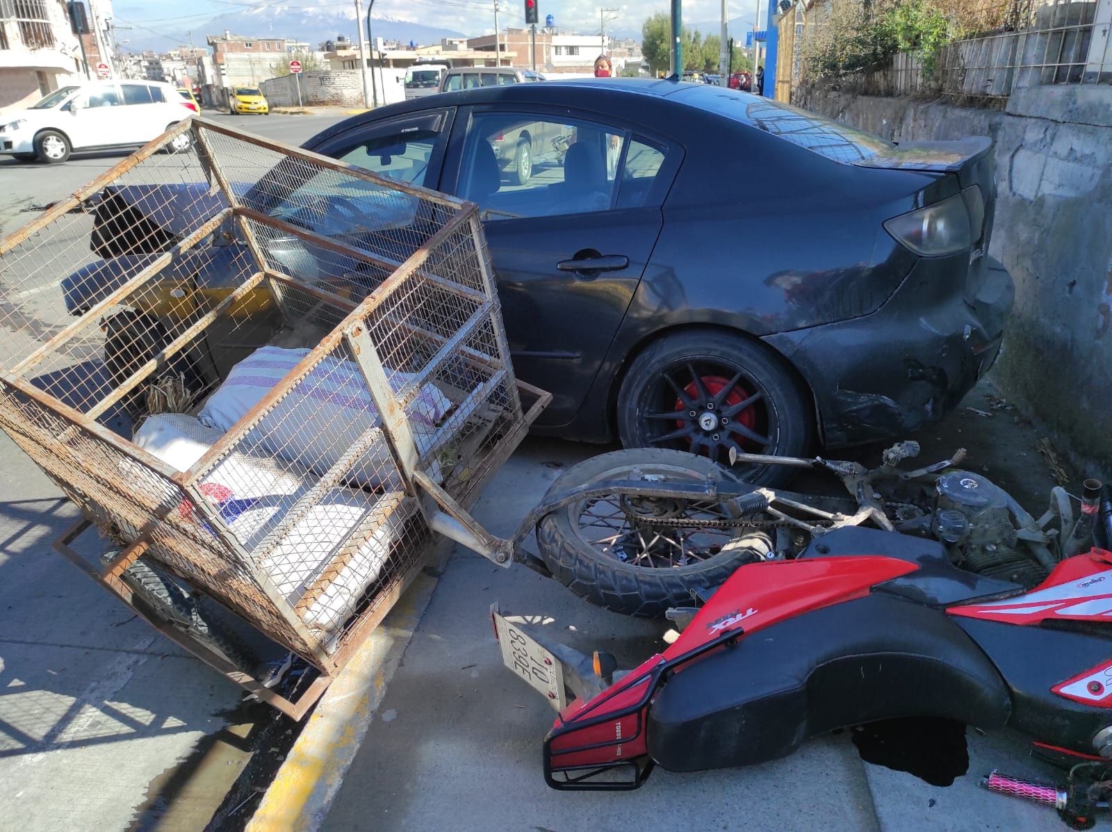 Durante el fin de semana, en Riobamba, se registraron tres accidentes de tránsito de magnitud. Uno de los últimos se dio en la intersección de la avenida Edelberto Bonilla y Loja, en donde un automóvil y una moto que remolcaba una canastilla con botellas recicladas, terminaron completamente destruidos.