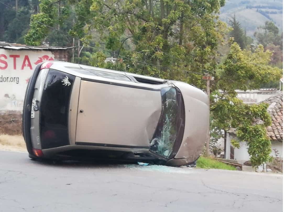 Uno de los últimos accidentes de tránsito se registró en Guano, en donde un vehículo terminó volcándose. No hubo víctimas mortales.