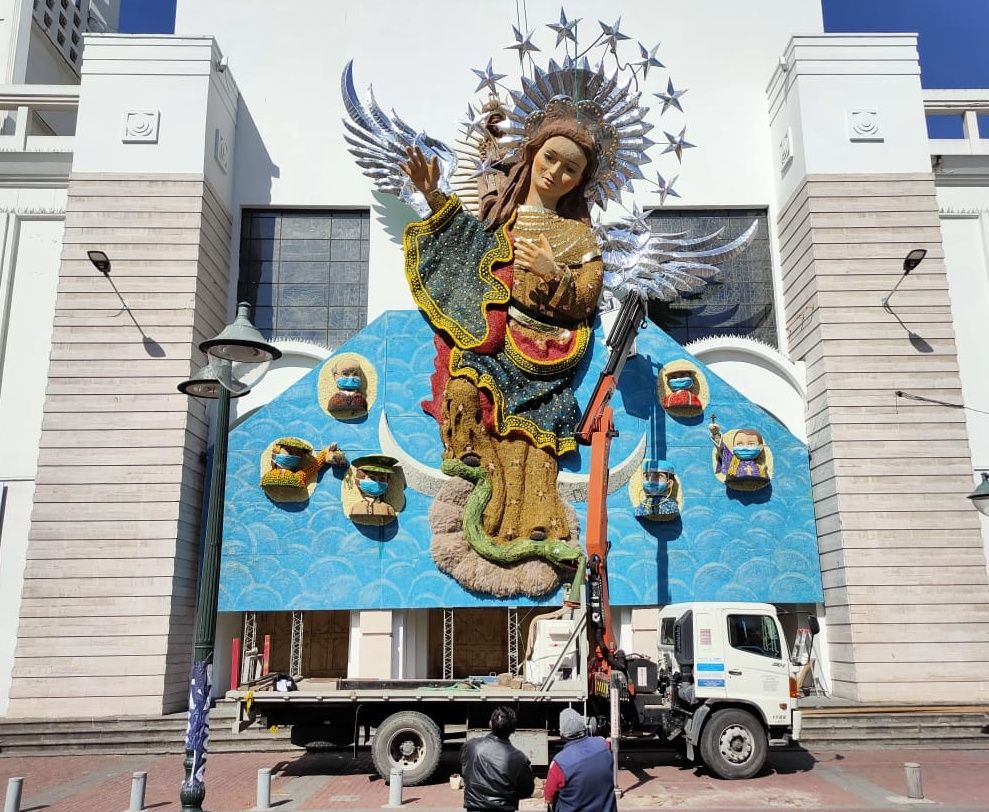 La temática de la alegoría es: “70 Años Resurgiendo” que tiene como protagonistas a la Virgen María e imágenes de personas que han estado en primera línea durante la emergencia sanitaria (médicos, policías, militares, sacerdotes, periodistas), como un homenaje porque han luchado por salvar miles de vidas.