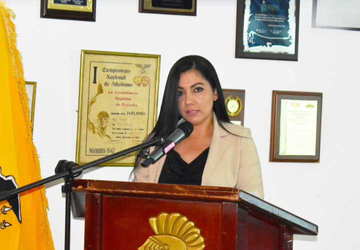 Cumpliendo con lo estipulado en el artículo 89 de la Ley Orgánica de Participación Ciudadana, Rocío Recuenco Ortiz, interventora de FDCh, expuso el informe de labores, acompañada autoridades representantes del Ministerio del Deporte, la Defensoría Pública, delegados de las ligas cantonales y deportistas.