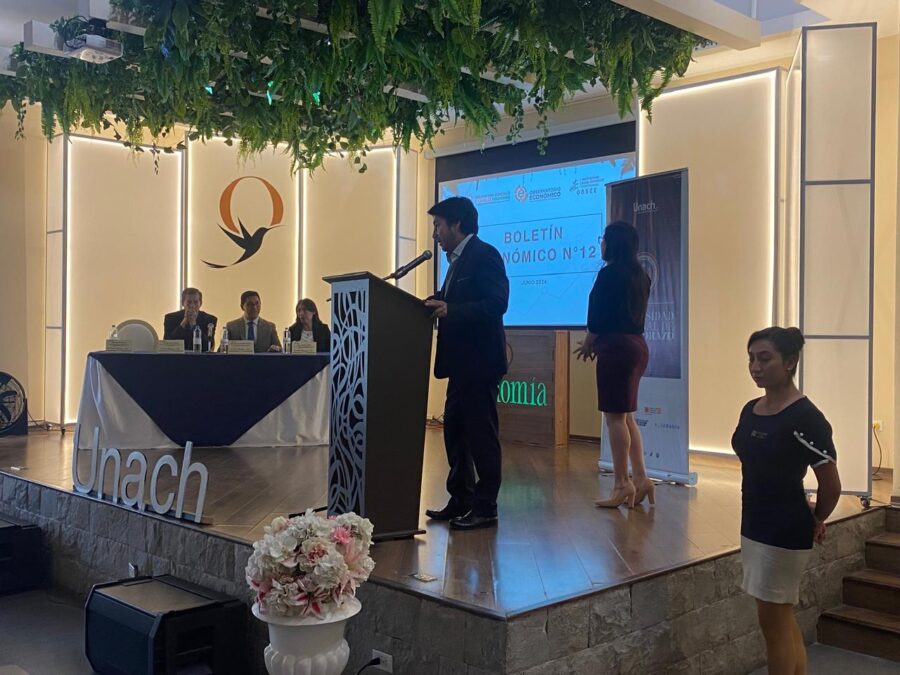 La Universidad Nacional de Chimborazo (UNACH) llevó a cabo una rueda de prensa en las instalaciones del Hotel Quindeloma para presentar su Boletín Económico N┬░ 12. Este evento informativo contó con la participación destacada de Nicolay Samaniego, rector de la universidad, Orlando Granizo, decano de la Facultad de Ciencias Políticas y Administrativas, Myriam Murillo, subdecana de la facultad, Eduardo Zurita, director del Observatorio Económico y de la carrera de Economía, así como estudiantes y medios de comunicación.