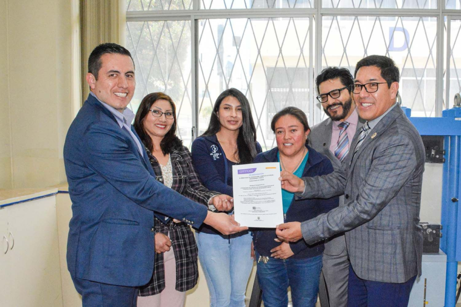 El acto oficial de entrega del certificado tuvo lugar en las instalaciones de la UNACH, donde Nicolay Samaniego, rector de la universidad, recibió el reconocimiento en compañía de Patricio Villacrés, decano de la Facultad de Ingeniería, y las ingenieras Cristina Polo y Cinthya Toledo, responsables de la dirección del laboratorio.